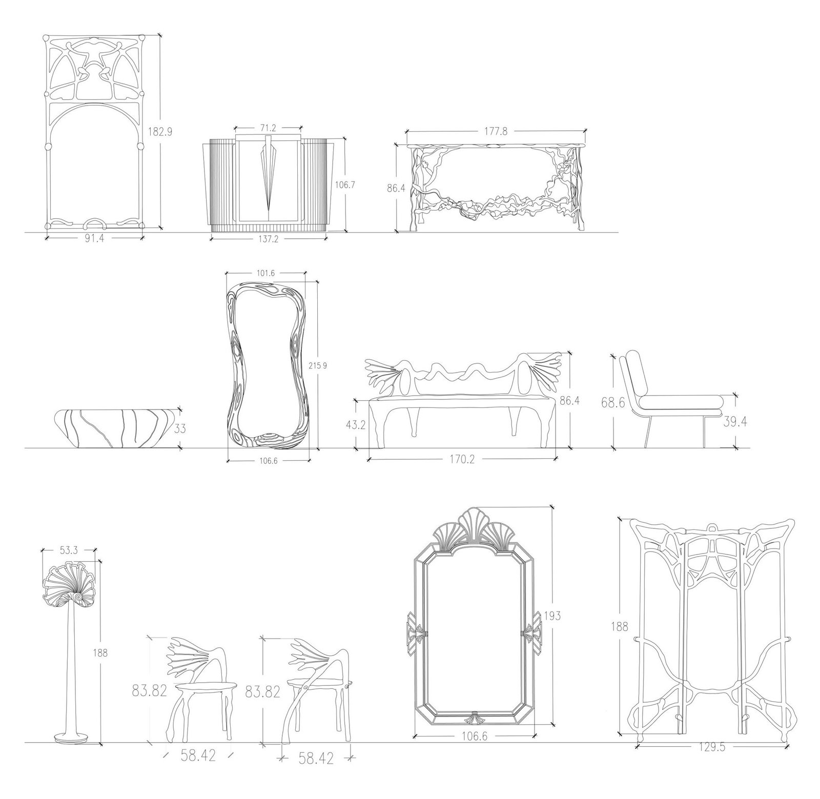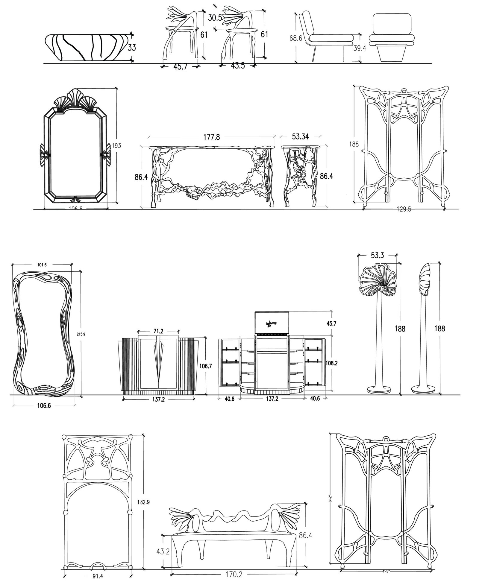 Our Contemporary Artisanal Collection is made from a variety of carefully selected wood. The pieces are carved into abstract shapes, inlaid with mother of pearl and adorned with hand crafted ornaments.